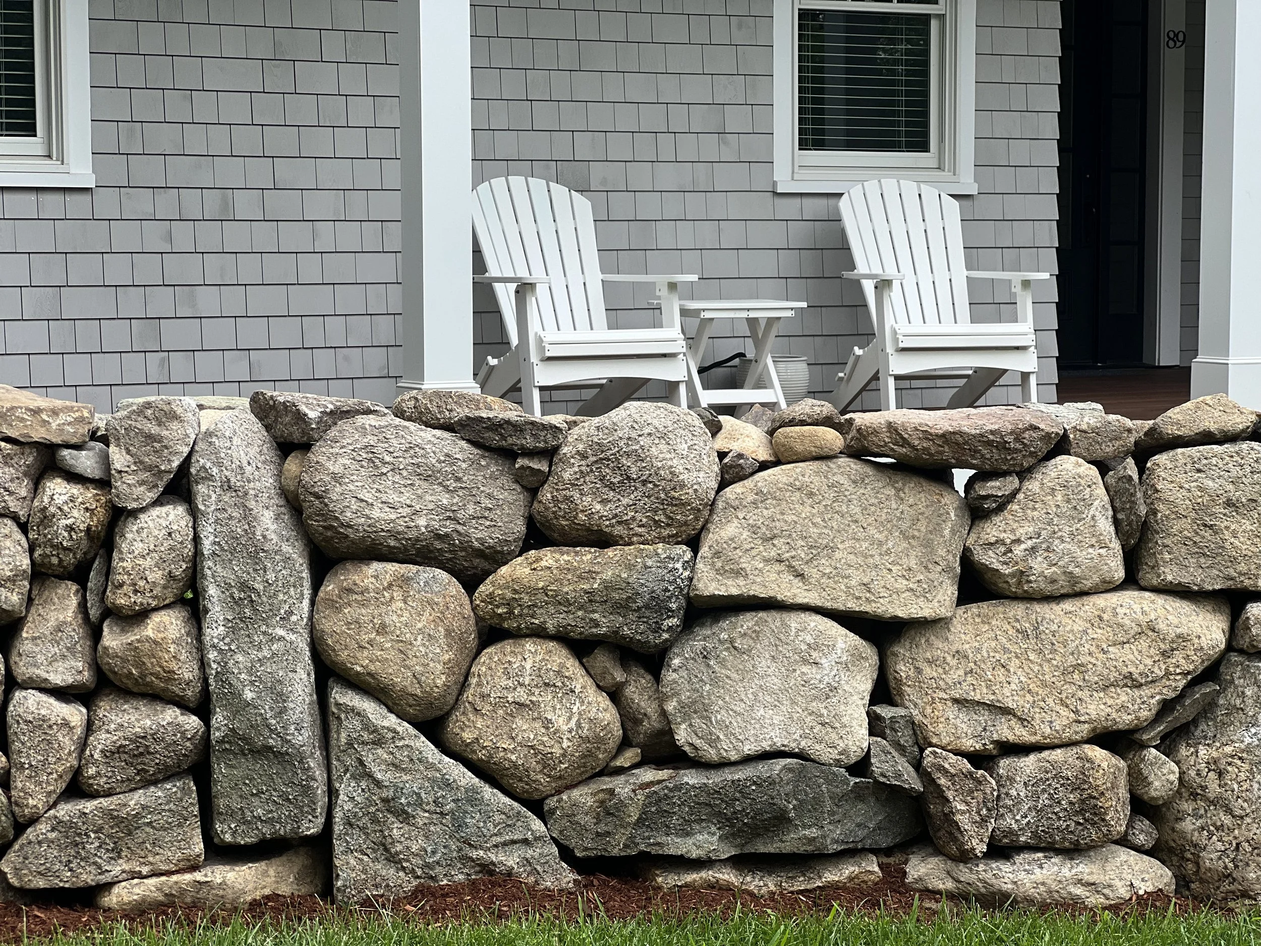 Fieldstone Farmers’ Walls in Willowbend, Mashpee, the only dry stack stone walls in Willowbend, built by Kolb Custom Land Services, Christopher R. Kolb