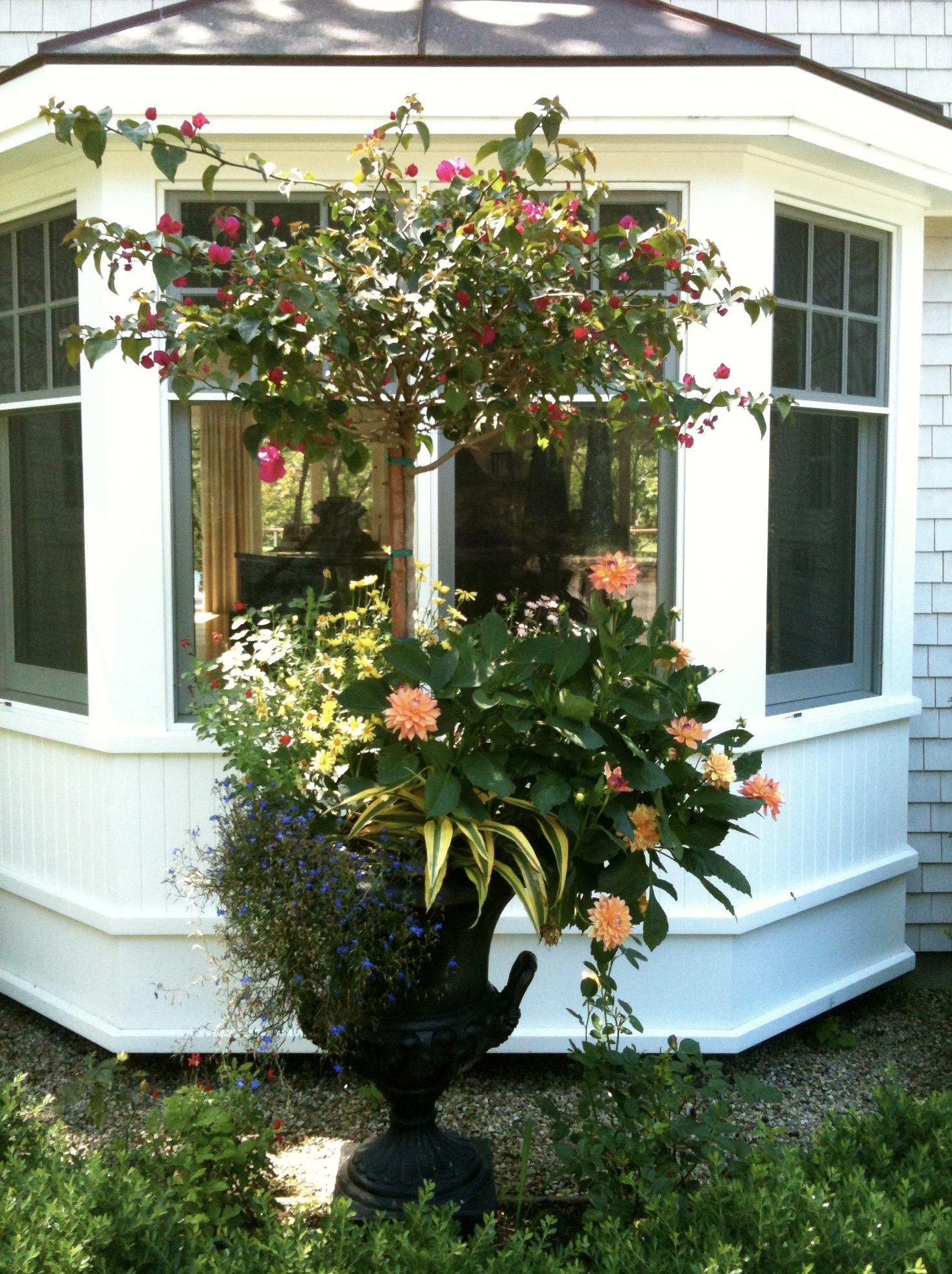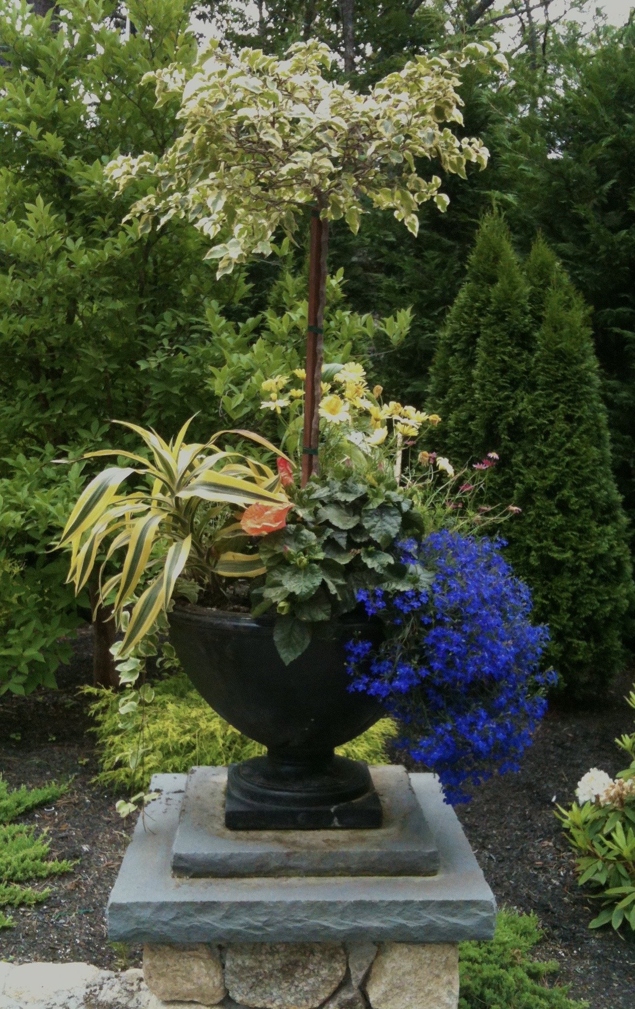 Draecana, Variegated Bougainvillea, Begonia, Lobelia